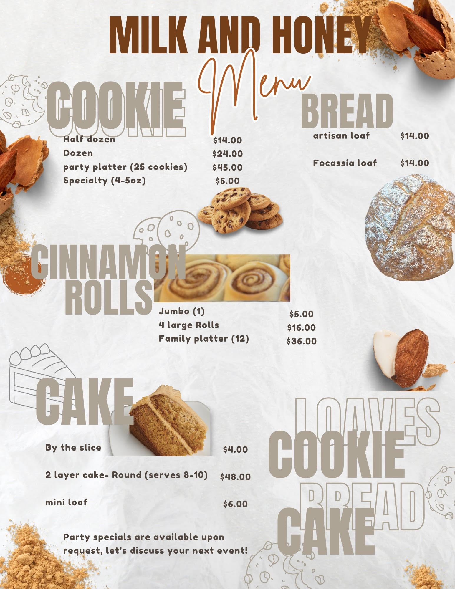 From custom cakes to baked pastries, we're ready to whip up something delicious just for you. Request your order below, and we'll take care of the rest!